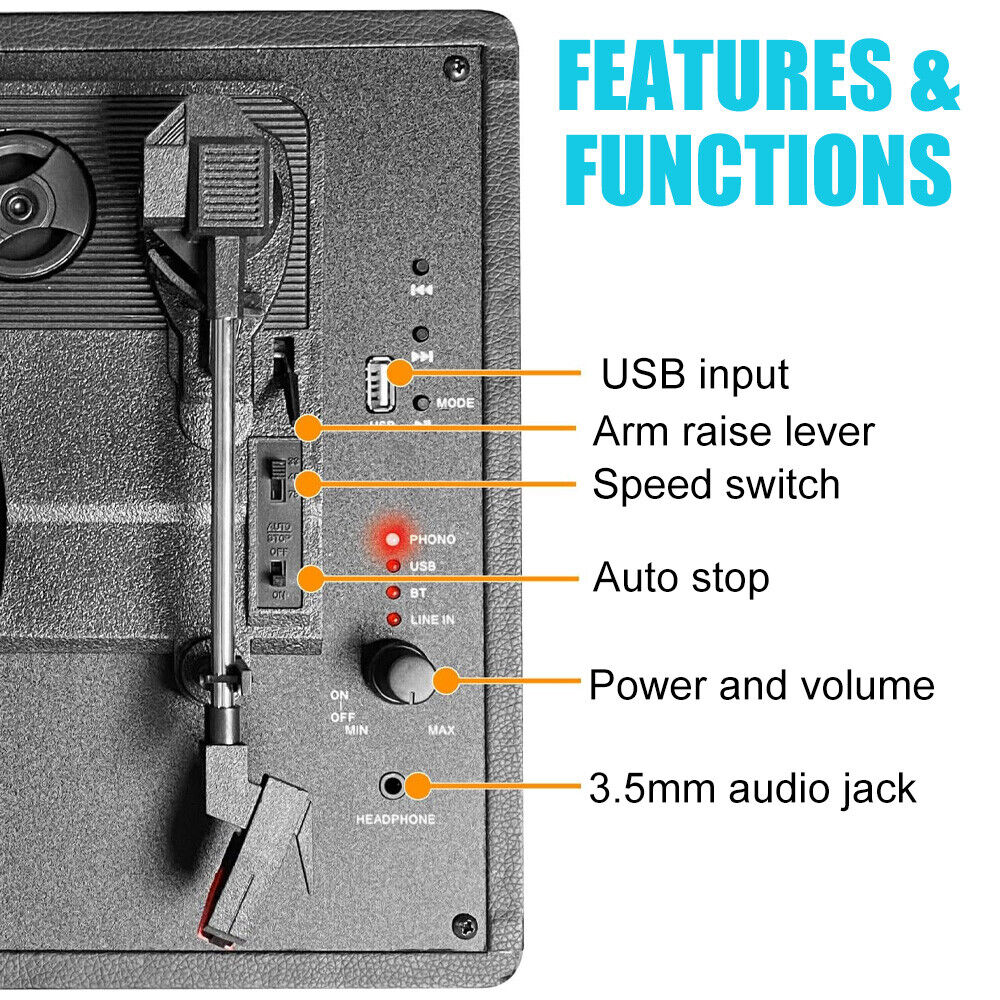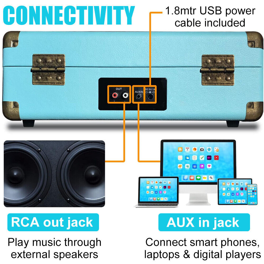 NNEDSZ Blue Retro Briefcase Vinyl Record Player Suitcase 3 Speed Turntable Stereo Christmas